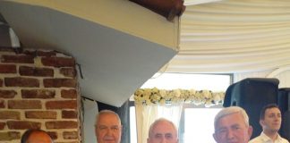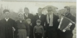 Фотографија од венчавањето на Горан и Јасмина, изведувајќи го чинот на Трикратното вртење околу масата.Инаку Горан е од родот Дончевци од Илинден...