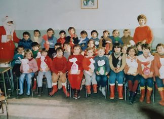 ООУ Гоце Делчев -населба Илинден,предновогодишна фотографија на која се наставничката Драгица Ѓорѓиевска со своето одделение ,нормално со пакетчињата што ги „донел“ дедо Мраз