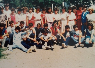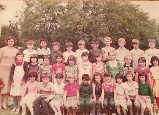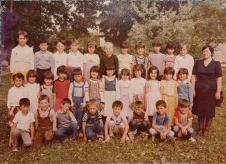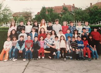 На фотографијата наставничката Душка Деловска со своето одделение во учебната 1985 година.