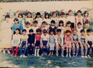 Учителката Ема Стојановска , ООУ Гоце Делчев -1986 година ,со своето 2-а одделение
