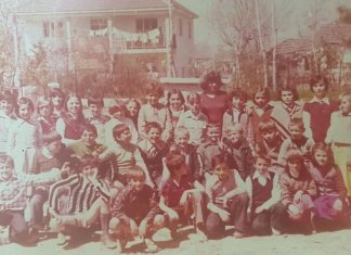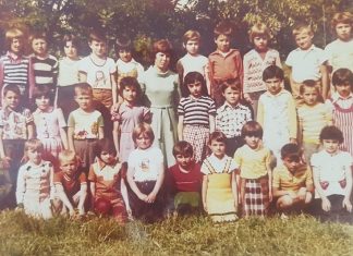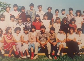На фотографијата наставникот Љубе Димовски со своето одделение во 1979 година.