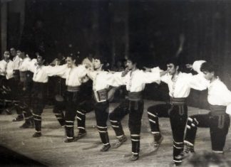 Слика од учеството на КУД Илинден на балканскиот фестивал -смотра на фолклорот во Загреб-1976г.