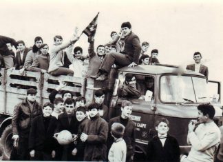 * Фотографијата е направена во 1970 година ,пред дерби натпреварот помеѓу Ф.К. Кадино - Ф.К.Илинден,ова се дел од симпатизерите на ФК Илинден кои дојдоа ...