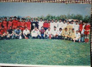 Заедничка слика на Ф.К.ИЛИНДЕН збратимената екипата од ГОРЊИ КОМРЕН од НИШ-1984г.