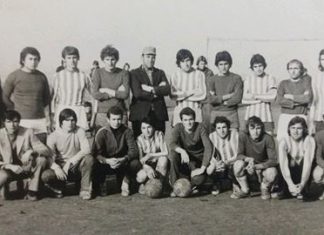 Слика од една наша екипа во мал фудбал од седумдесетите години на минатиот век.Означени се сите со исклучок на „мустаклијата“-горе...