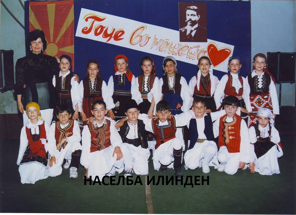 На фотографијата учениците под водство на учителката Нада во припрема на свечана програма по повод патронатот на училиштето во 90-те години од минатиот век