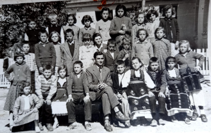 На фотографијата Учителот Панче ОУ во Кадино,со своето одделение,фотографирани околу 1958-60 година.На фотографијата препознати се тогашните ученице: