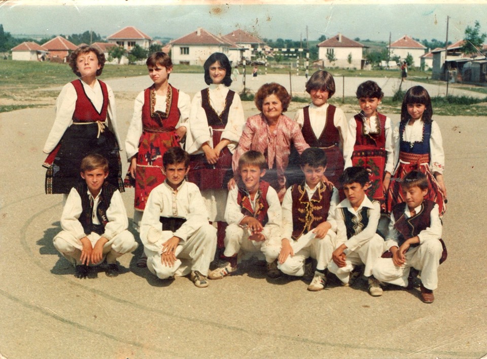 Фотографија од ООУ Гоце Делчев -населба Илинден ,на која се ученици- млади фолклористи од настапот за училишниот патронат во 80-те години.