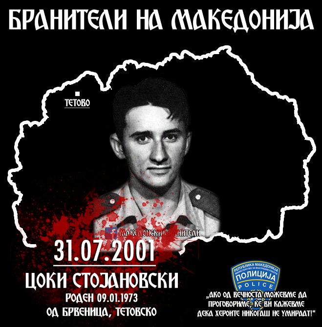 *31 ЈУЛИ 2001.- Во Тетовско, од нападот врз полициски пункт кај Радио Тетово, загина Цоки Стојановски (на 28 г.) од Тетово, припадник на МВР.