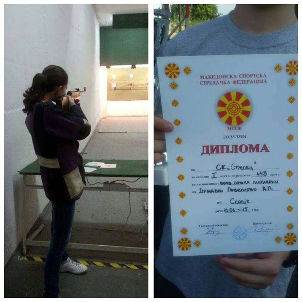 На истото првенство го освои 1-то место за пукање со воздушна пушка пионерки во групата.