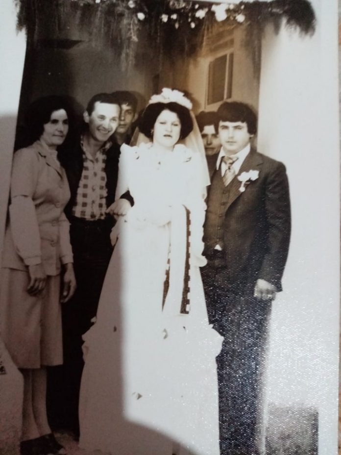 Верувања и ОбичаиОбичаи поврзани со свадби Свадба на Марина и Цане-1979 Од страна на Драги - 20/08/2020 0 212 Ads Фотографија од свадбата на Марина Николовска од родот Аџиевци и Цане Димовски од Марино во 1979 година. На фотографијата се уште и мајката и братот на Марина Дика и Стојанче.