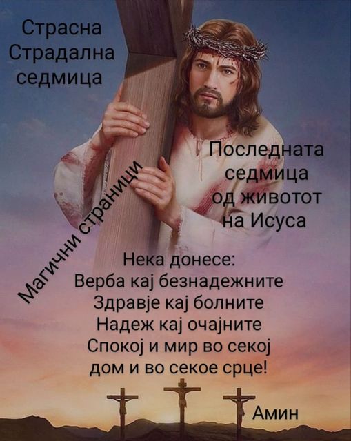 Од денес -понеделник започнува седмата недела од велигденскиот пост која се нарекува и Велика Седмица, затоашто Исус Христос во оваа седмица направил големи дела,ја уништил смртта ,го победил гревот и го слегнал проклетството.