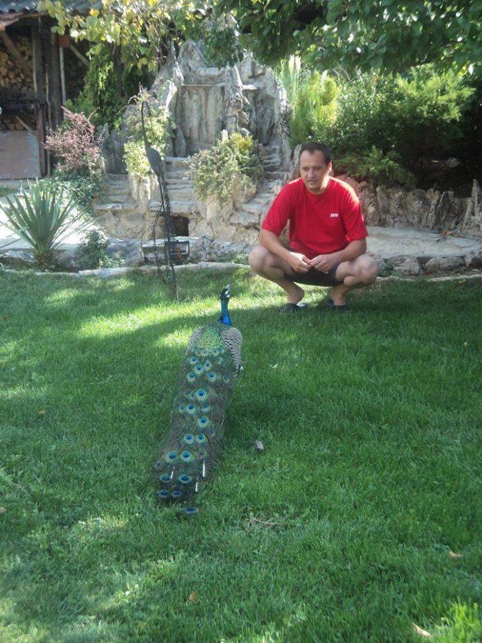 Во посебно уредено место во својот двор, тој со голем мерак, создал услови заодгледување на егзотични птици ,Пауни и други.