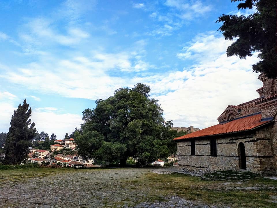Веднаш пред црквата „Св. Богородица Перивлепта“ во старото охридско јадро.